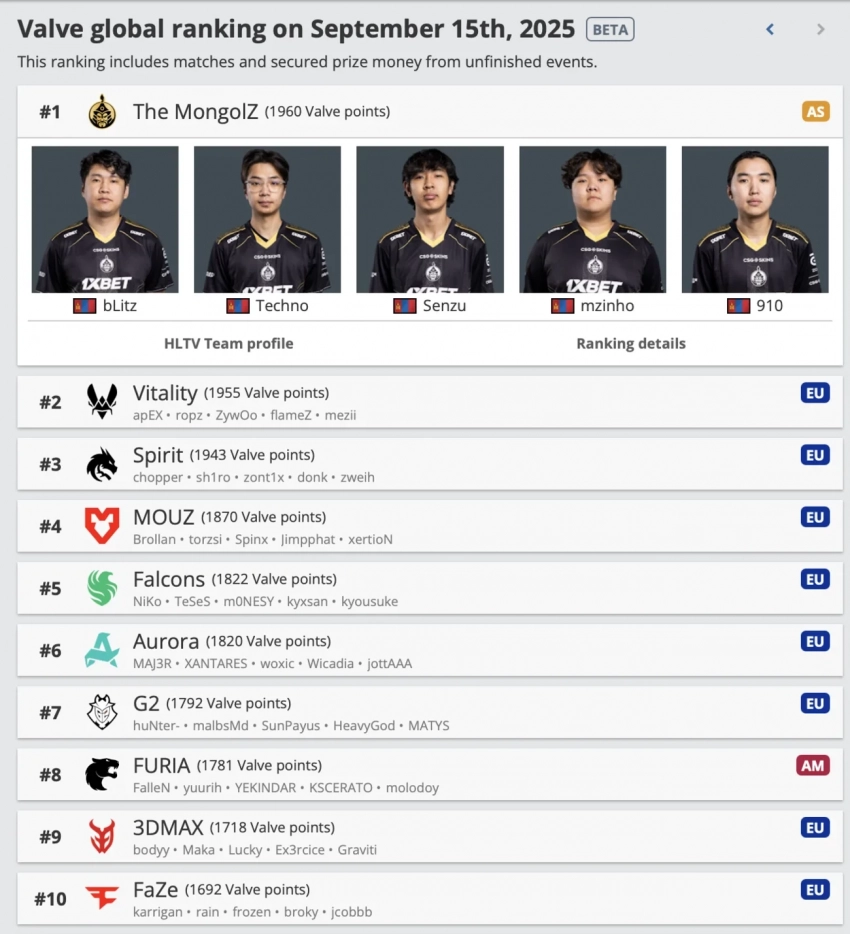 The Mongolz возглавила рейтинг HLTV по Counter-Strike 2