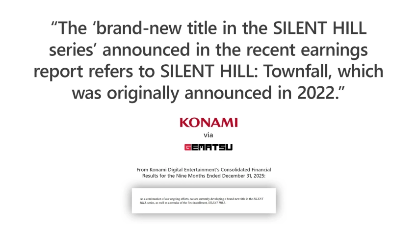 Таким образом, официально в рамках серии разрабатываются Silent Hill: Townfall и ремейк первой Silent Hill, над которой трудятся авторы ремейка SH2.