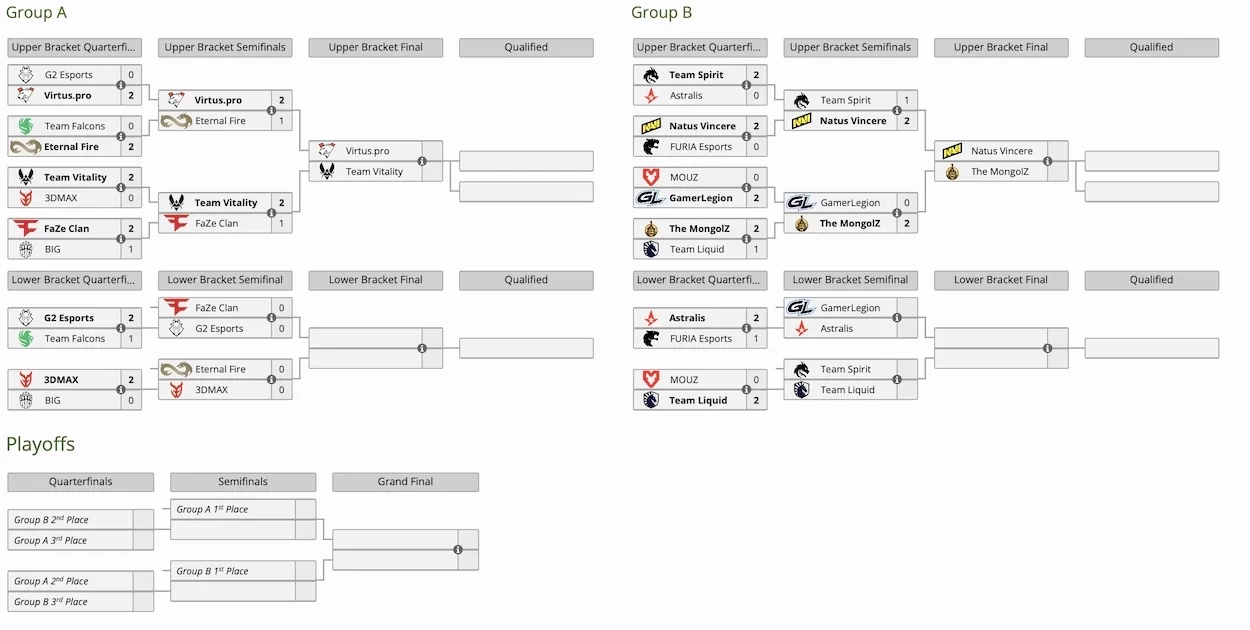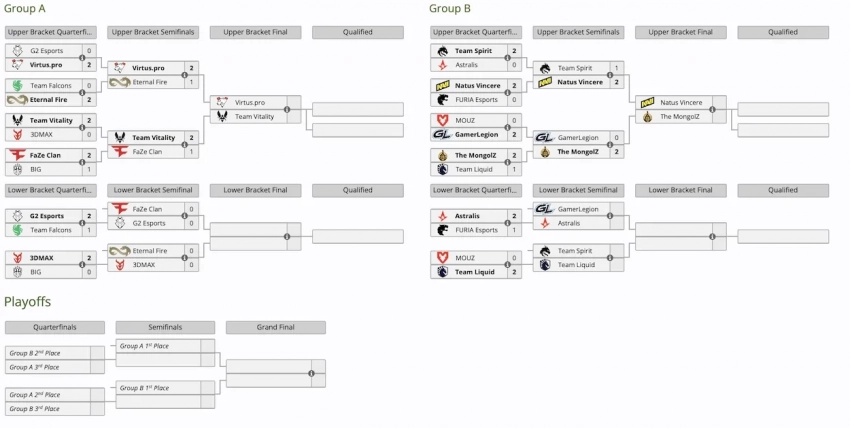 Также турнир покинули FURIA Esports и MOUZ. Они потерпели поражения в двух сыгранных поединках, как ранее Team Falcons и BIG. Все четыре команды заняли 13-16 место и получили по 10 тыс долларов.