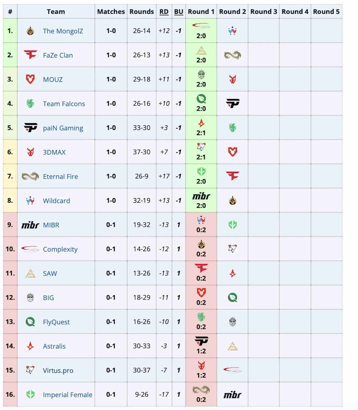 Со второго раунда победители играют с победителями, а проигравшие с проигравшими. Затем восемь лучших составов пройдут в плей-офф.
