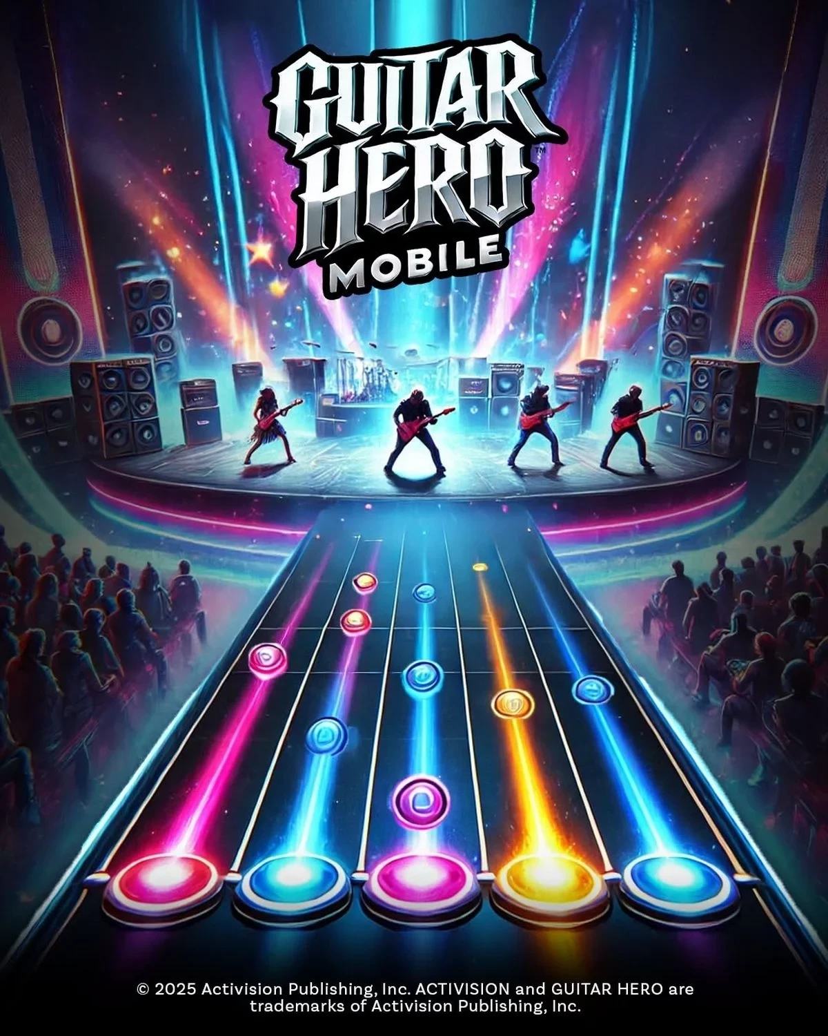 Activision обвинили в использовании дешёвого искусственного интеллекта для создания изображения. Постер Guitar Hero Mobile демонстрирует логотип игры на невнятном фоне в сопровождении подозрительно похожих силуэтов с одинаковыми красными гитарами, в окружении башен усилителей, похожих на стиральные машины, и с висящими в воздухе динамиками.
