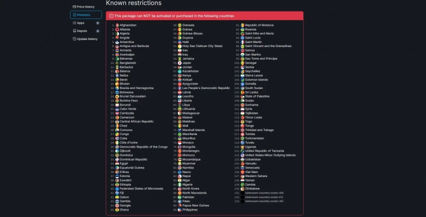 А вот и традиционный список стран, где SIE официально ограничила распространение ремастера The Last of Us Part 2 в Steam: