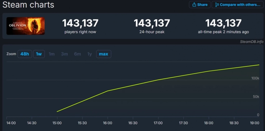Вскоре после релиза в Steam количество одновременных игроков превысило 143 тысячи человек. По онлайновым показателям игра уже обошла Baldurʼs Gate 3 и Path of Exile 2.