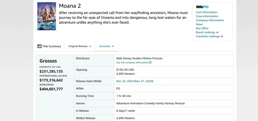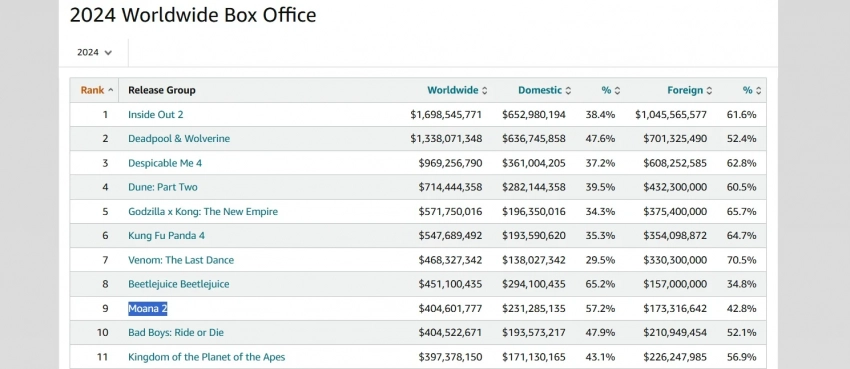 «Моана 2» обошла «Плохих парней до конца» и стала 9-м самым кассовым фильмом 2024 года