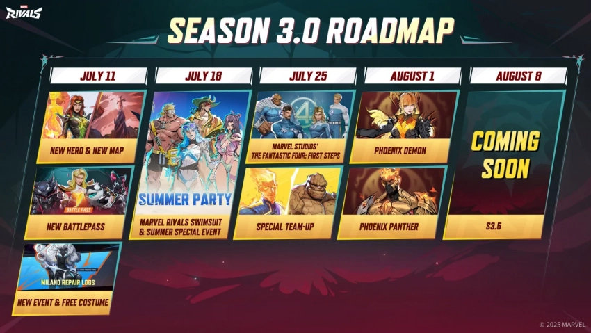 18 июля магазин Marvel Rivals ждёт пополнение обещанными бикини-скинами. На постере, изображённом на дорожной карте, видно новые наряды Псайлок, Луны Сноу, Локи и Тора. Тогда же начнётся особое летнее событие, детали которого пока неизвестны.