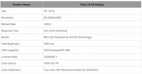 Также MSI сообщает, что экран Titan 18 HX обладает 100-процентным охватом цветового пространства DCI-P3 и получил сертификат VESA DisplayHDR 1000, поскольку его пиковая яркость составляет 1000 кд/м2. По словам производителя, каждый дисплей Titan 18 HX перед установкой будет проходить тщательную проверку и калибровку.