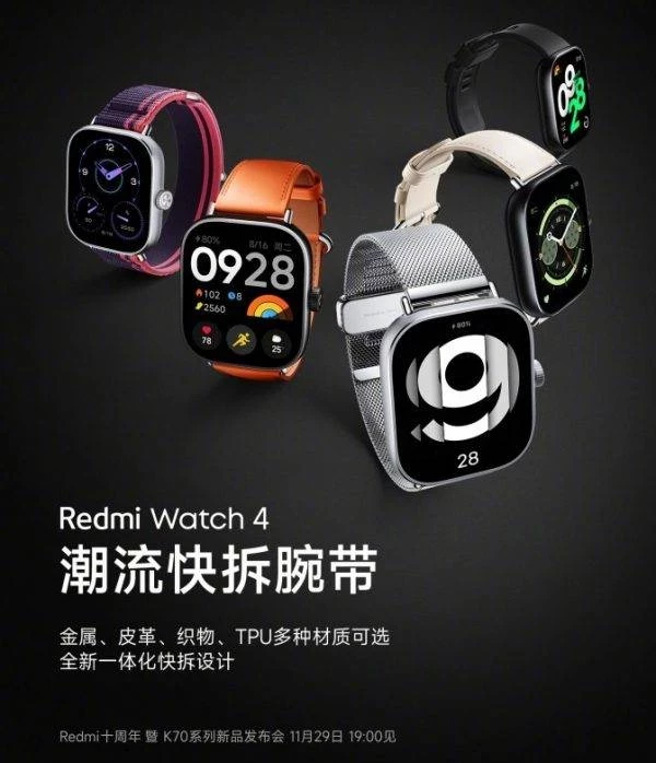 Смарт-часы Redmi Watch 4 предложат разнообразие различных ремешков: пластиковые, стальные, кожаные и тканевые. Кроме того, новика впервые для серии часов Redmi Watch получила алюминиевый корпус.