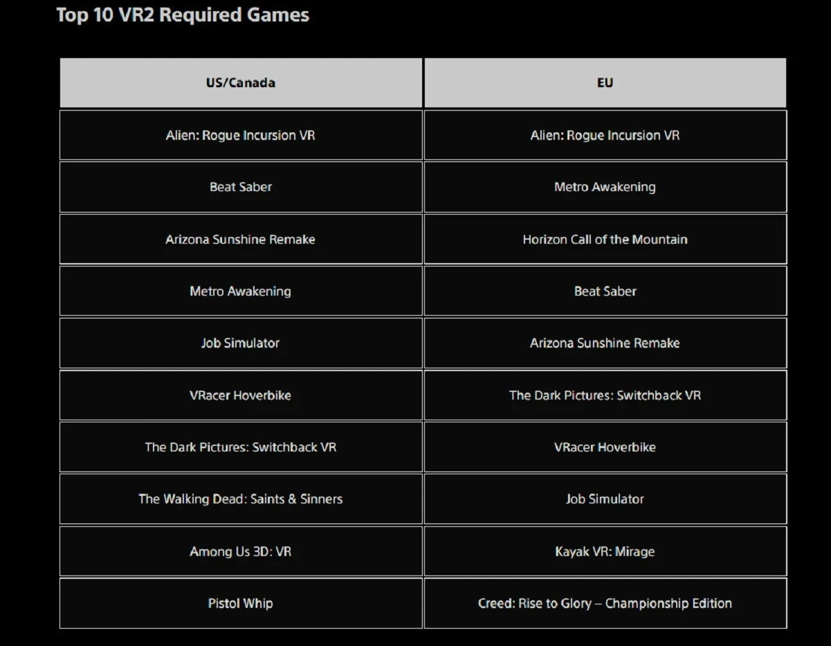 Топ загружаемых игр для PS VR2 в Европе, США и Канаде в ноябре