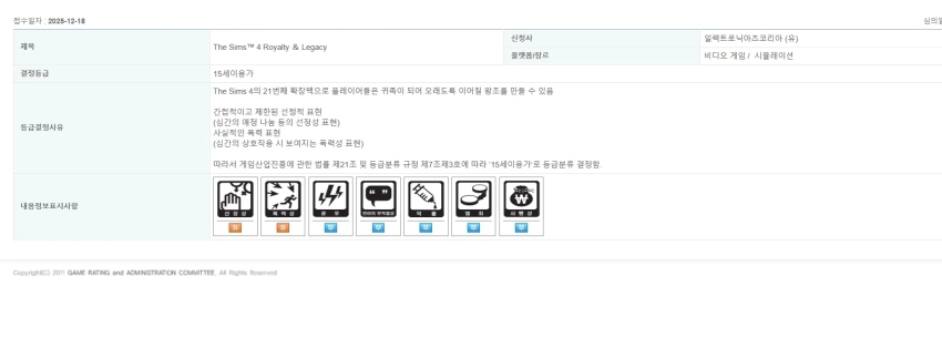 Обложка: скриншот игры The Sims 4/мод RoyaltyСледующее дополнение/большой набор для The Sims 4 называется Royalty & Legacy («Королевская семья и наследие»). Оно засветилось на сайте рейтингового агентства в Южной Корее.