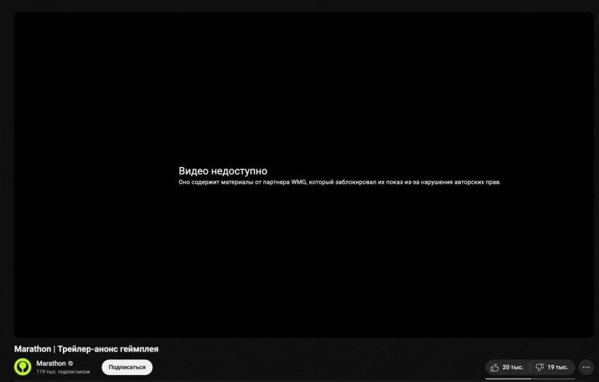 Главные новости » Все об играх » Геймлейный трейлер Marathon «снесли» с YouTube из-за претензий к музыке