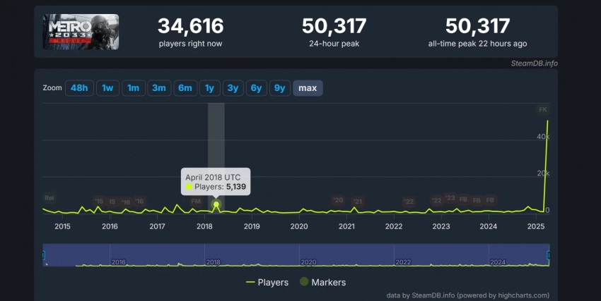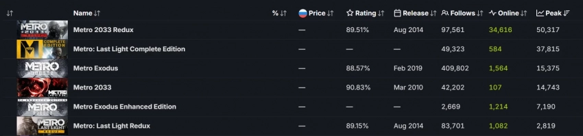 Пиковый онлайн Metro 2033 Redux в Steam превысил 50 тысяч игроков — это рекорд для серии